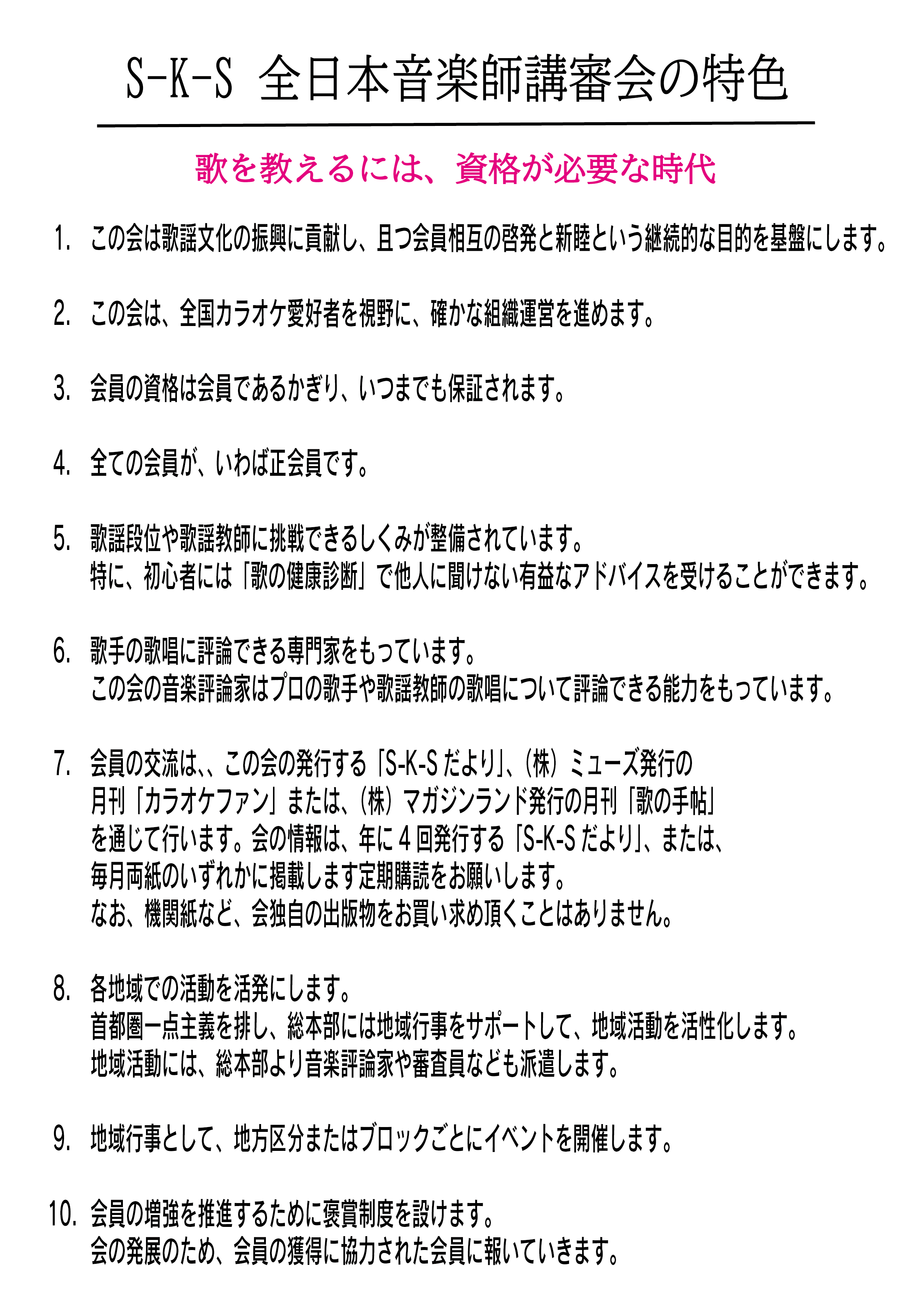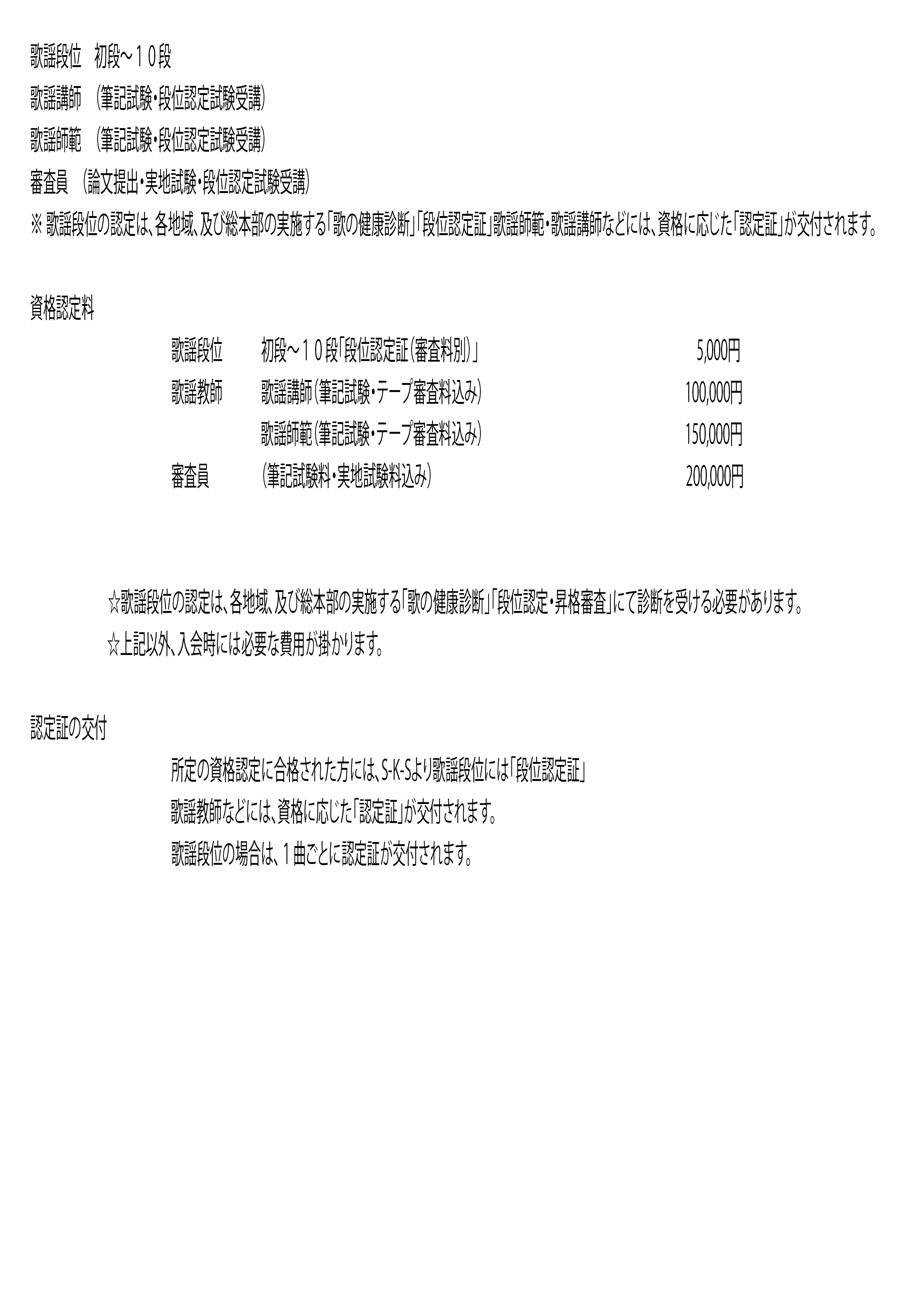 S-K-Sは、一般会員(全国歌仲間の会)と区分し、上級の会員に相応して会員証を特製しております。