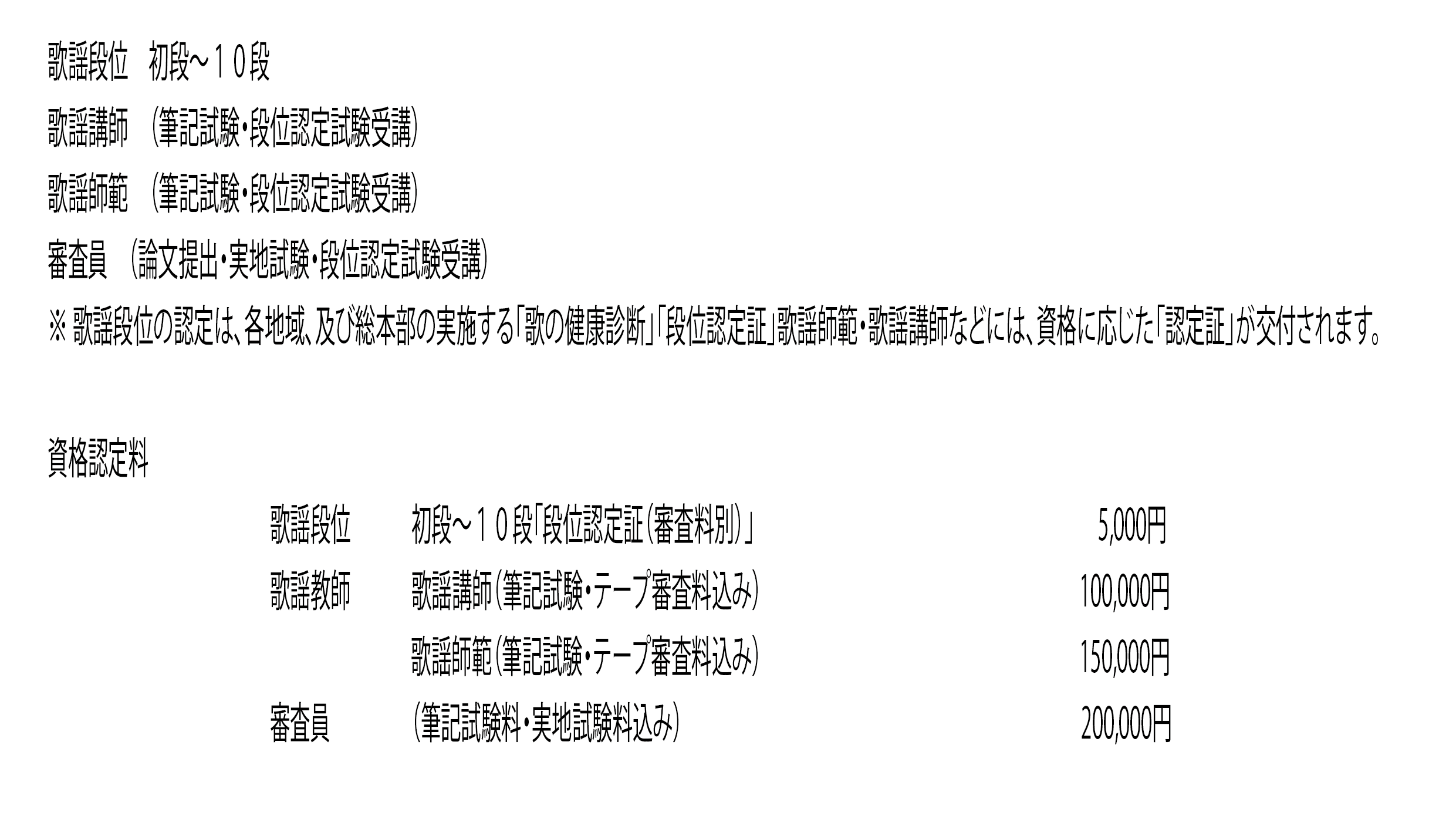 地方組織の長には、会員の増加とその育成を奨励することを目的として、歌謡教師などの資格認定に